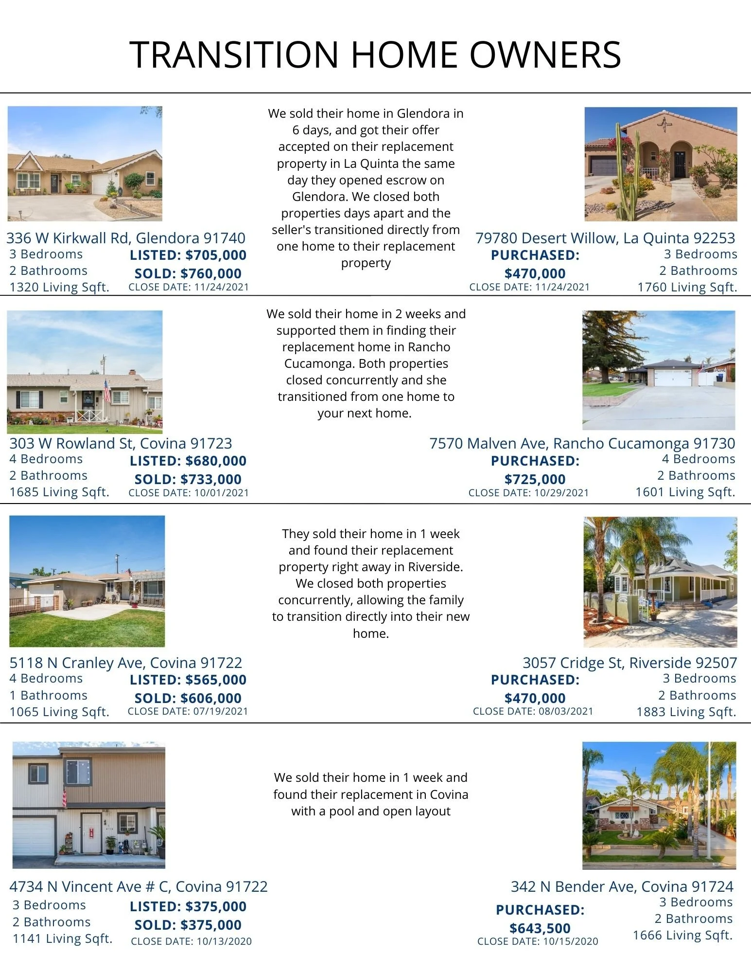 An agents negotiating and communication skills support in determining the best price and terms on the sale of your home. For example, when selling your current home and purchasing your next home, a strong negotiator will align the time frames that are convenient for your specific needs to support you in moving from your current home into your new purchase. Below we have included just a few recently sold properties, in which our clients comfortably transitioned directly their current home into their new home.
